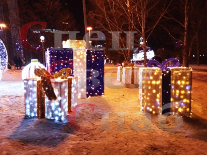Светодиодная фигура "Подарок с золотым бантом" 1.3 х 1 х 1 - прекрасный пример благоустройства парка в городе Петрозаводск.