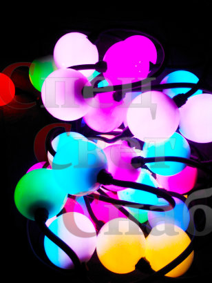 Новогодняя и разноцветная светодиодная гирлянда-шарики. Размер колбы d=2.5 см.Это украшение везде создаст праздничную атмосферу сказки. Украсьте ею окна, стены, елку. Фасад дома, витрину магазина или кафе. Благодаря высокой влаго- и морозоустойчивости выдержит любые погодные условия и не погаснет. Изготовлена из прочных материалов и экономична в электропотреблении. Лампы изделия не нагреваются даже при длительном использовании. Этими показателями обладает вся продукция из нашего каталога. Приобретая светодиодный декор у нас вы можете быть уверены в его качестве и долговечности.
